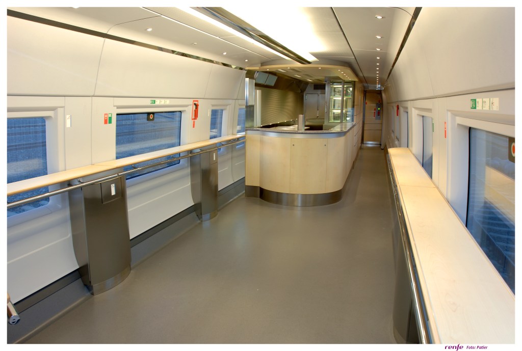 Interior da carruagem-bar de um comboio da série AVE S-103. Créditos da imagem: Francesco Paolo Fumarola, via Flickr.